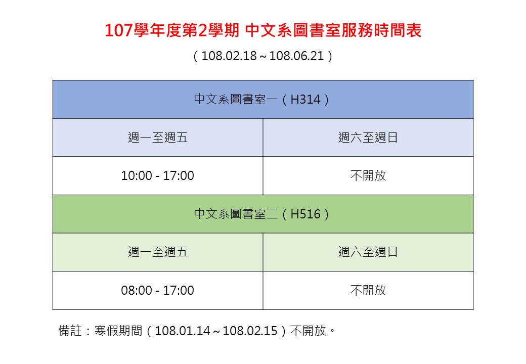 東海大學中文系--系所公告 -107學年度第2學期中文系圖書室服務時間