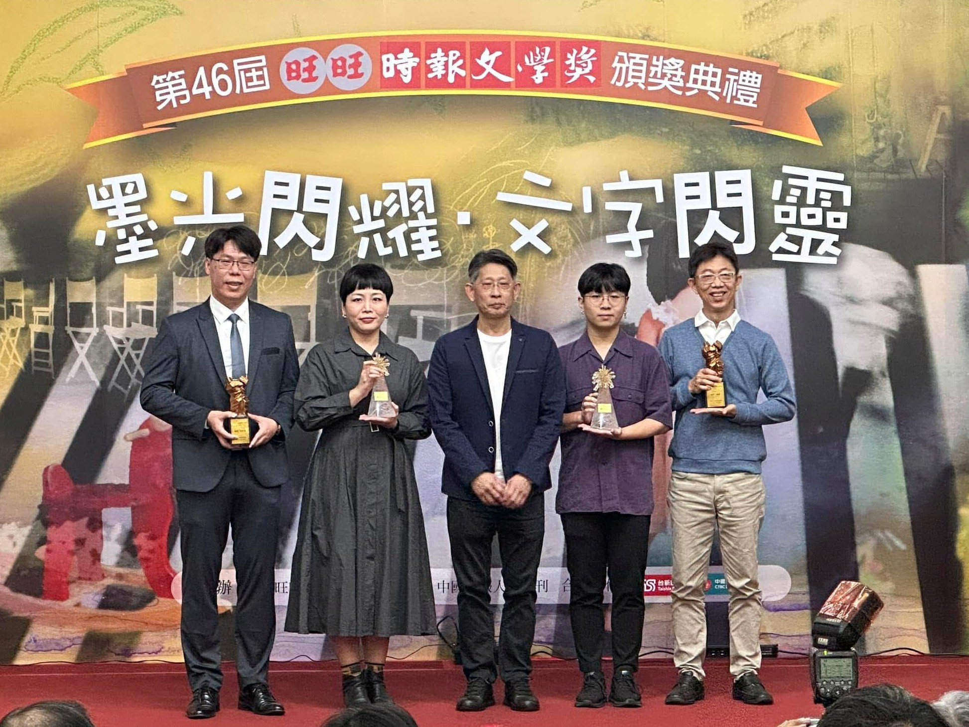 東海中文系碩士生林佳儀(左二)摘下第21屆林榮三文學獎新詩組佳作,以及第46屆時報文學獎新詩組二獎,成為本年度唯一同時於兩大報文學獎獲獎的創作者。