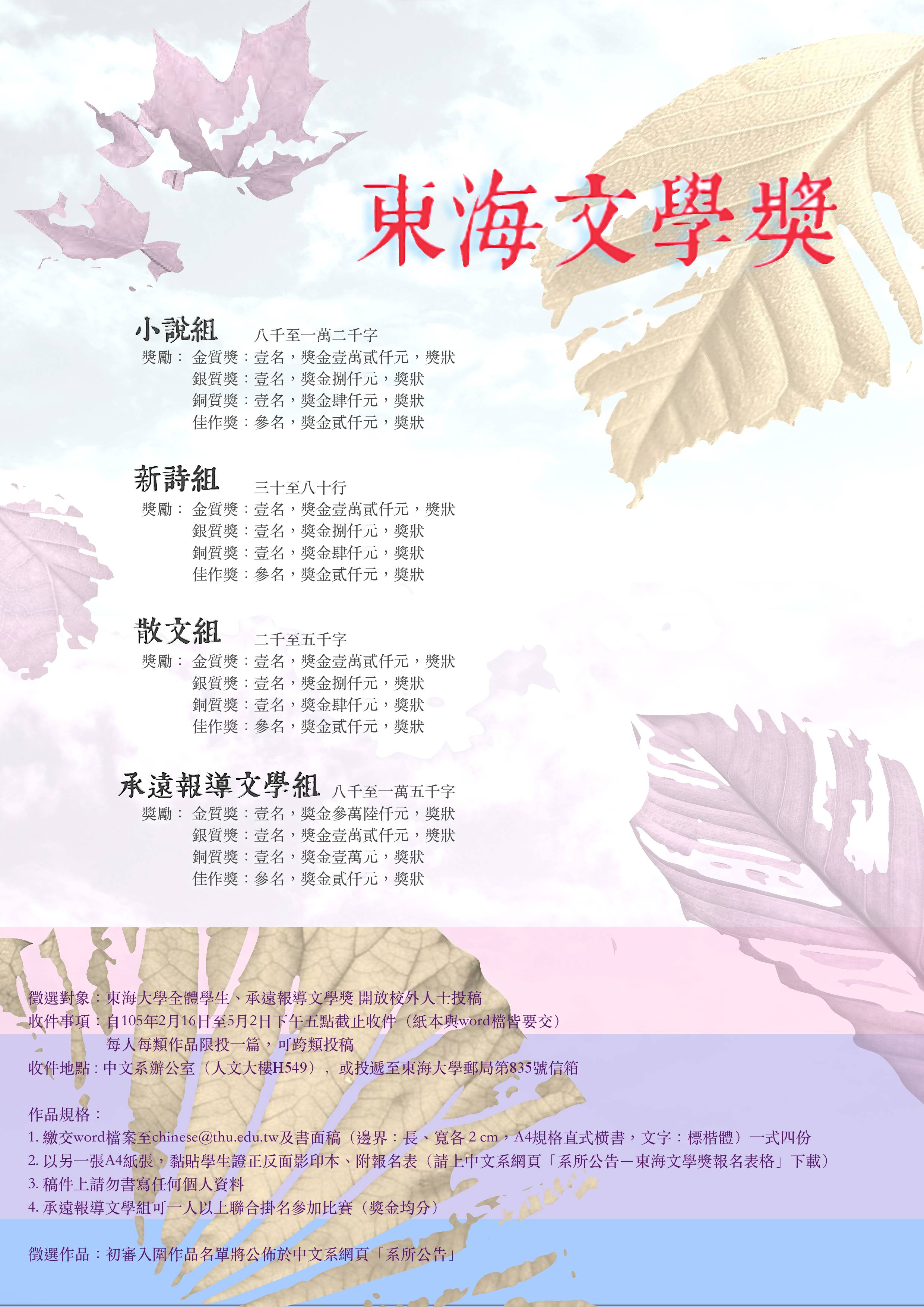 東海大學中文系---104學年度「東海文學獎」徵文辦法