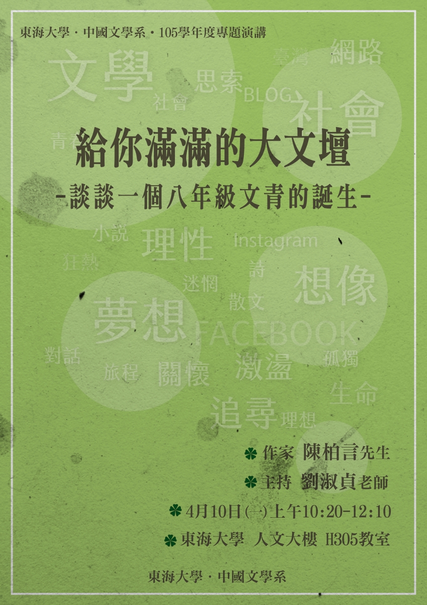 講題:給你滿滿的大文壇:談談一個八年級文青的誕生