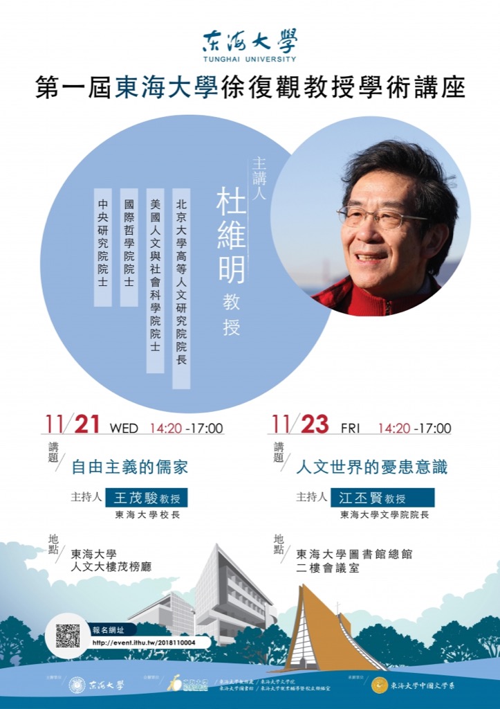本屆「東海大學徐復觀教授學術講座」杜維明教授因故不克前來,原訂11/21(三)與11/23(五)杜教授專題演講,以及11/14(三)與11/15(四)讀書會活動,