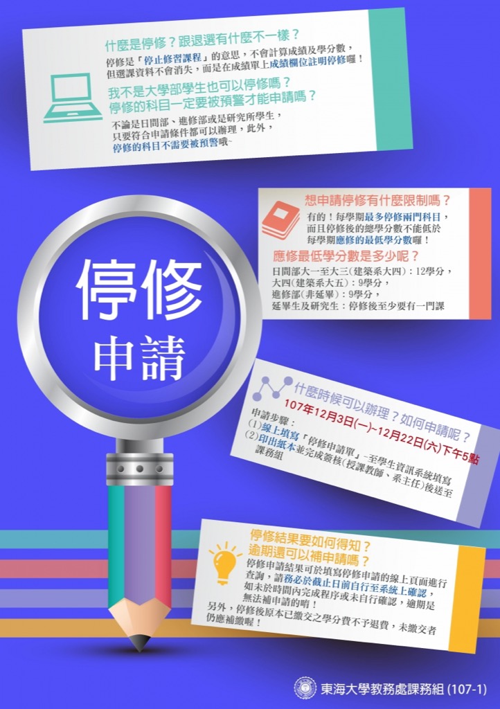 相關說明已於課務組網站公告:http://ithu.tw/1071withdraw