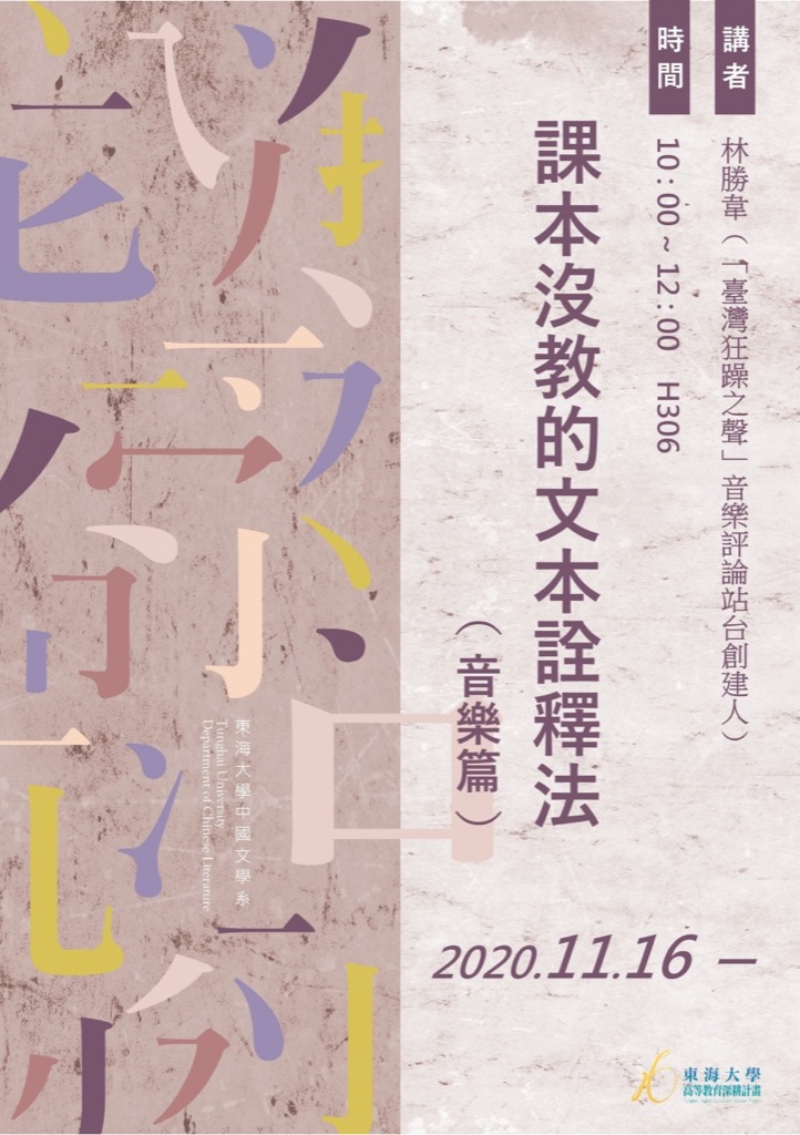 東海大學中文系---【演講資訊】課本沒教的文本詮釋法(音樂篇)